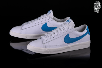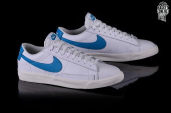 NIKE BLAZER LOW LEATHER WHITE BLUE SWOOSH