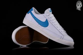 NIKE BLAZER LOW LEATHER WHITE BLUE SWOOSH