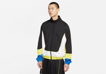 La línea Nike Basketball renueva la chaqueta Throwback, una prenda de cremallera completa para fuera de la cancha confeccionada al 100 % con material reciclado.